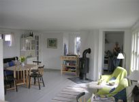 Køkkenet er gjort til et åbent "samtalekøkken" i forbindelse med stuen.