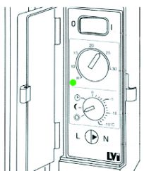 Radiatorerne styres af natsænkningsuret som er ved EL-tavlen i det lille kammer.
