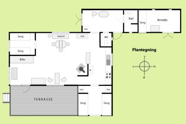 Stugan indeholde 4 sovepladser , og i anneks er der også en soveplads.